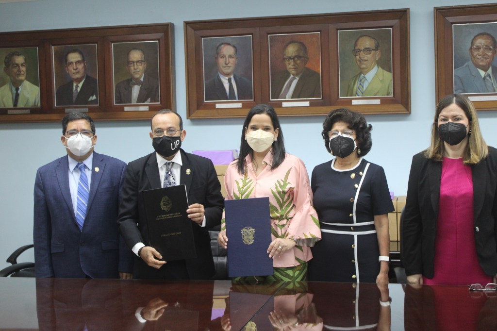 La firma se realizó en la rectoría de la Universidad de Panamá, estuvieron presentes el Dr. Marcos Young, vicedecano de la Facultad de Medicina de la Universidad de Panamá y la Dra. Rosario Turner, asesora en Asuntos de la Niñez y la Tercera Edad del MIDES.